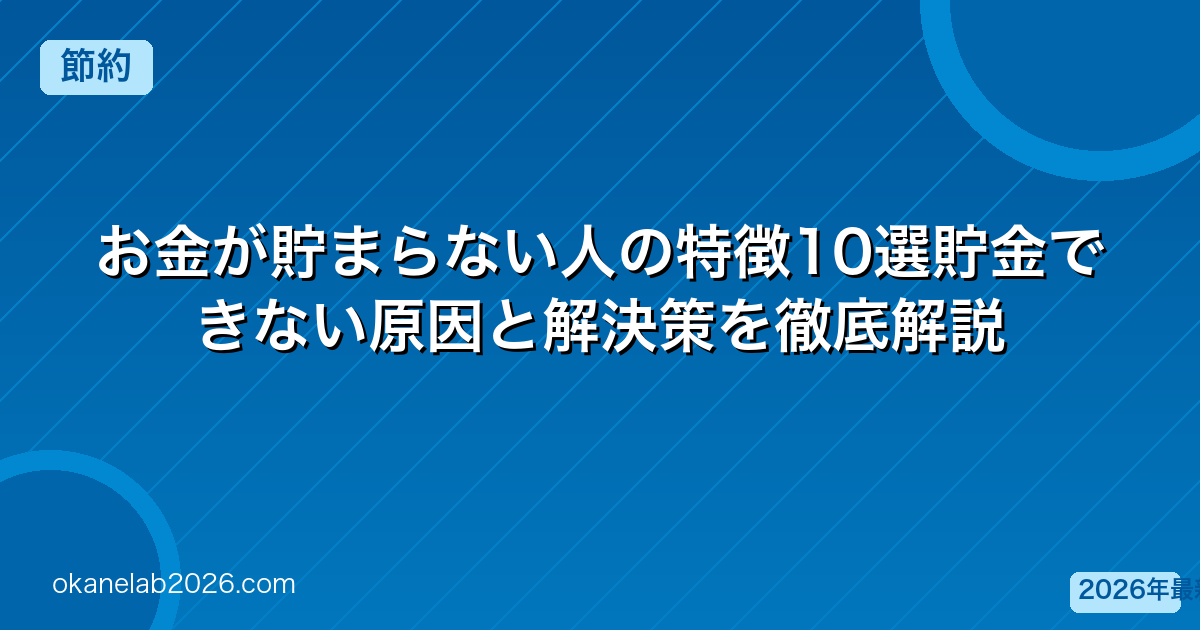 お金が貯まらない人の特徴10選【2026年4月版】貯金できない原因と解決策を徹底解説