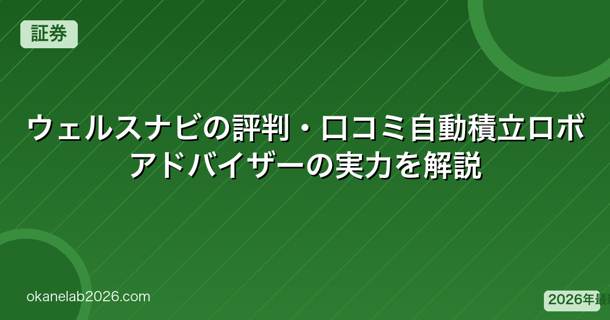 ウェルスナビは「全自動でおまかせ投資」ができるロボアドバイザーです。「投資を始めたいけど難しいことはわからない」という方に向いています。2026年最新の評判を解説します。