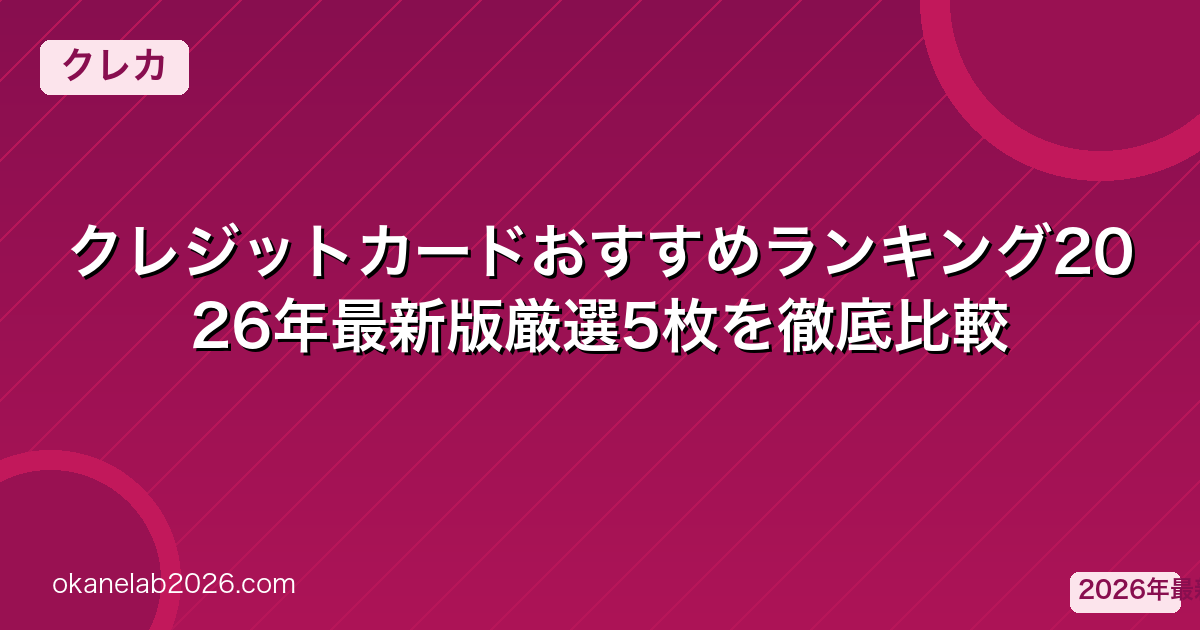 「クレジットカードを作りたいけど、どれがいいかわからない」という方に向けて、2026年最新のクレジットカードを徹底比較した。年会費・還元率・特典を総合評価して厳選5枚を紹介する。