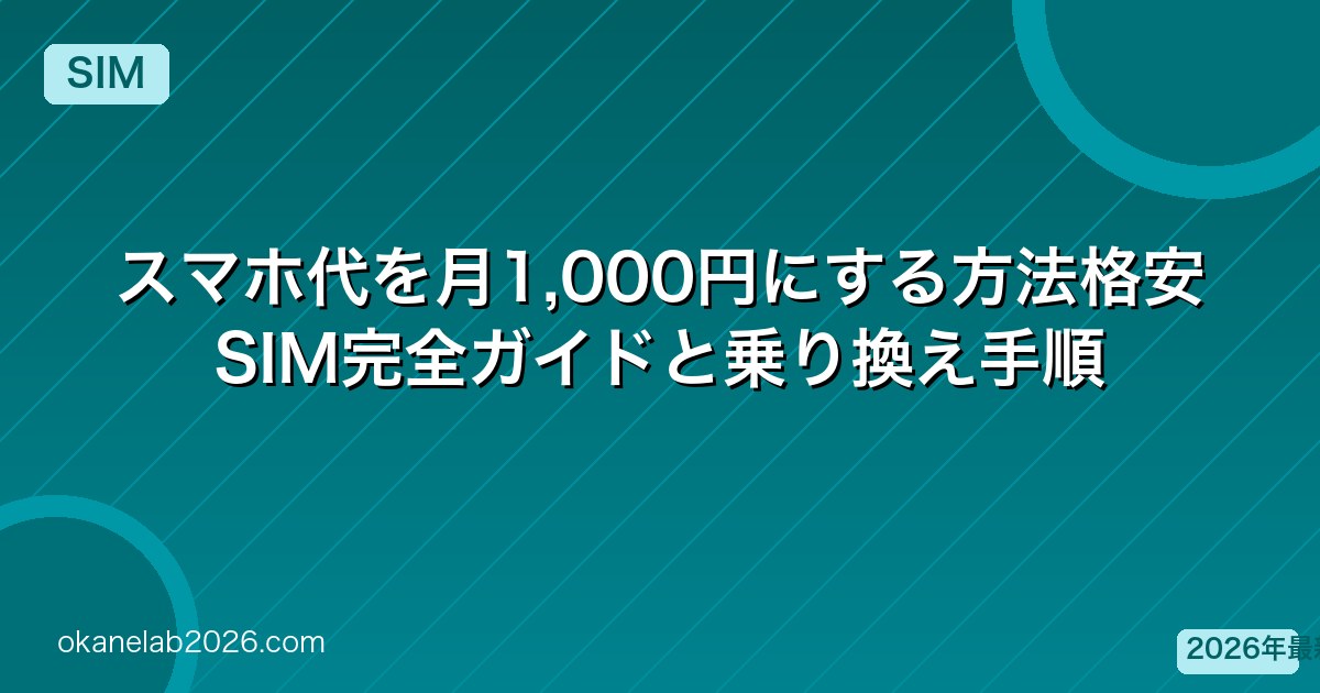 大手キャリア(ドコモ・au・ソフトバンク)から格安SIMに乗り換えるだけで、月5,000〜10,000円の節約が可能です。月1,000円でスマホを使う方法を解説します。
