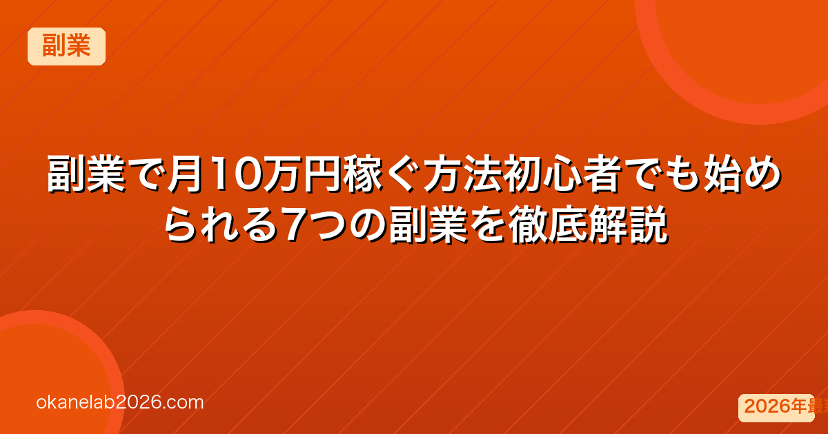 「副業で月10万円稼ぎたいけど、何から始めればいいかわからない」という方に向けて、2026年現在の副業事情と、初心者でも始められる7つの副業を徹底解説する。