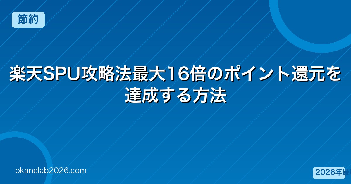 楽天のSPU(スーパーポイントアッププログラム)を最大限活用すれば、楽天市場での買い物で最大16%のポイント還元が可能です。2026年最新のSPU攻略法を解説します。