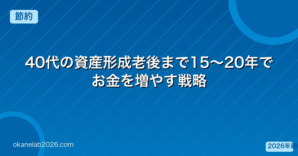 40代は「老後まであと20年」という節目です。「もう遅い?」いいえ、40代からでも十分な老後資金を作ることはできます。40代に特化した資産形成戦略を解説します。