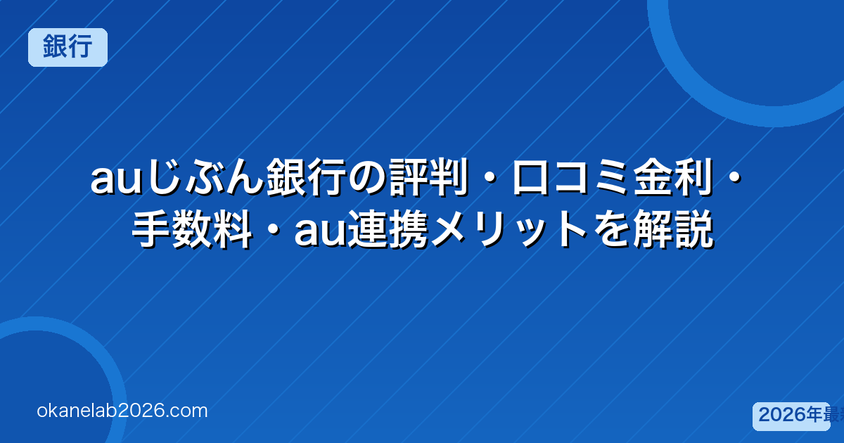 auじぶん銀行はau(KDDI)と三菱UFJ銀行が共同で設立したネット銀行です。高金利とauとの連携メリットが充実しています。2026年最新の評判を解説します。