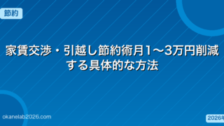 節約で最も効果が高いのは「固定費の削減」です。食費や娯楽費を削るのは精神的につらいですが、固定費は一度見直すだけで毎月自動的に節約が続きます。月3万円の固定費削減で年...