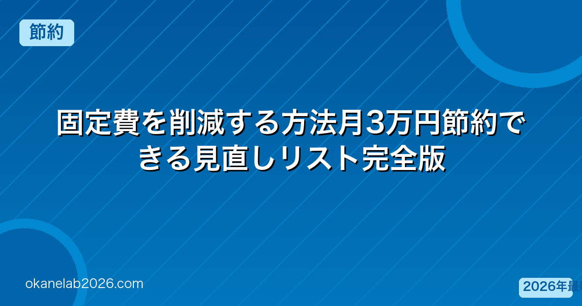 節約で最も効果が高いのは「固定費の削減」です。食費や娯楽費を削るのは精神的につらいですが、固定費は一度見直すだけで毎月自動的に節約が続きます。月3万円の固定費削減で年間36万円の節約になります。