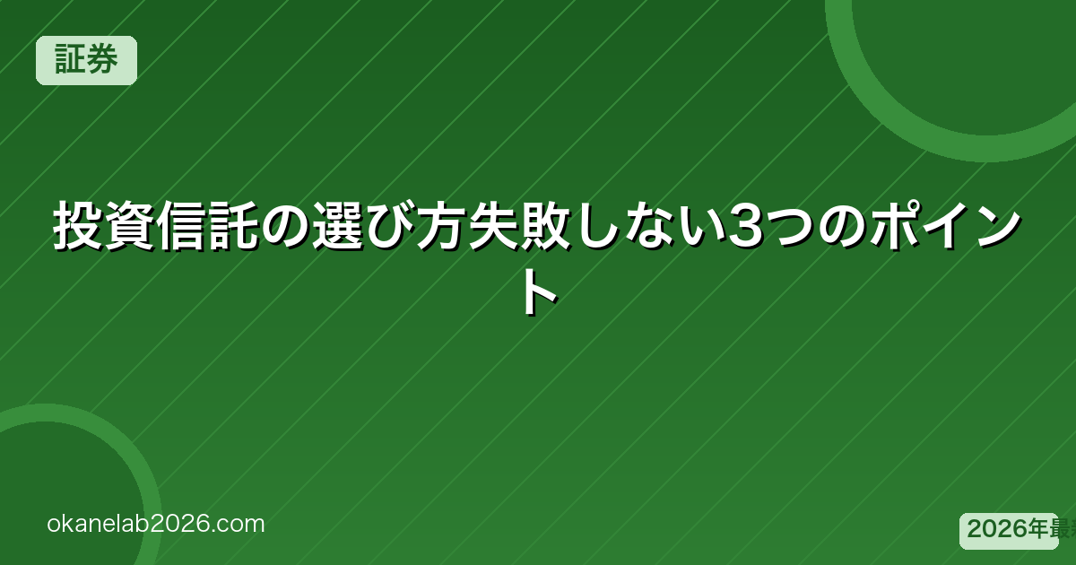 投資信託の選び方は「低コスト・インデックス・長期保有」の3原則を守るだけでほとんどの判断が正解になります。銀行窓口で勧められる高コスト・毎月分配型のファンドは避け、新NISAで低コストのインデックスファンドを選んで積立を続けることが、資産形成の最短ルートです。