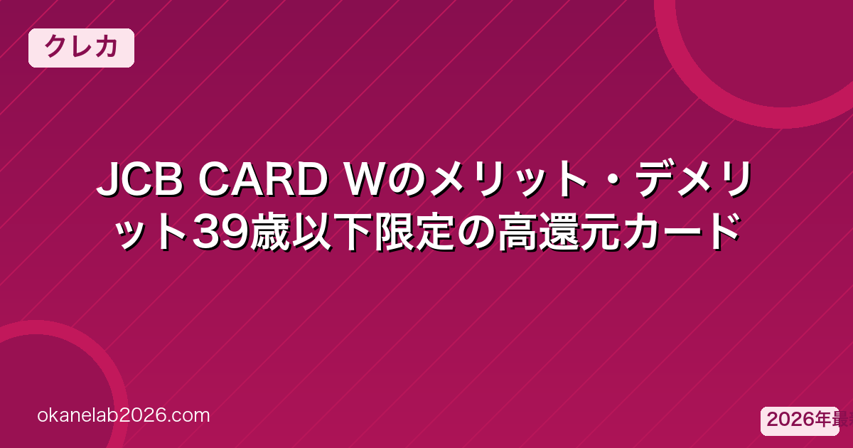 JCB CARD Wは「年会費無料かつ高還元率」という希少な組み合わせを持つカードです。特にAmazon・セブン-イレブンをよく使う方にとっては通常の2倍のポイントが貯まる最強の1枚です。39歳以下の方はすぐに申し込んでおくことをおすすめします。Amazonプライムと組み合わせることで年間数千〜1万円以上のポイント還元が期待できます。