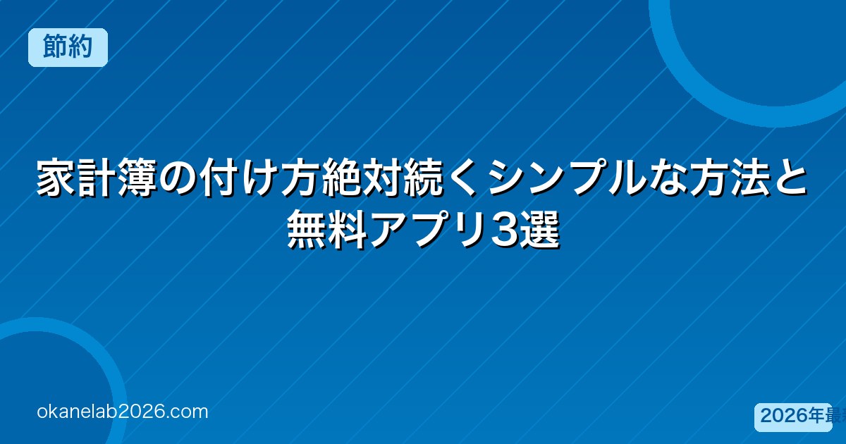 家計簿が続かない最大の理由は「面倒くさい」からです。毎日レシートを貼ったり金額を入力したりするのは長続きしません。2026年版の「絶対続く家計管理法」を解説します。