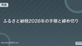 | ふるさと納税(6自治体以上) | 6か所以上に寄付 | e-Tax・税務署窓口 | 翌年3月15日 |