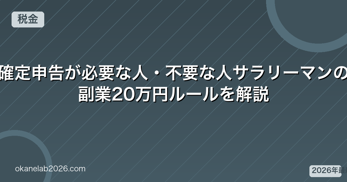 「副業収入が年20万円以下なら確定申告不要」というルールがよく知られていますが、正確には以下の条件があります。
