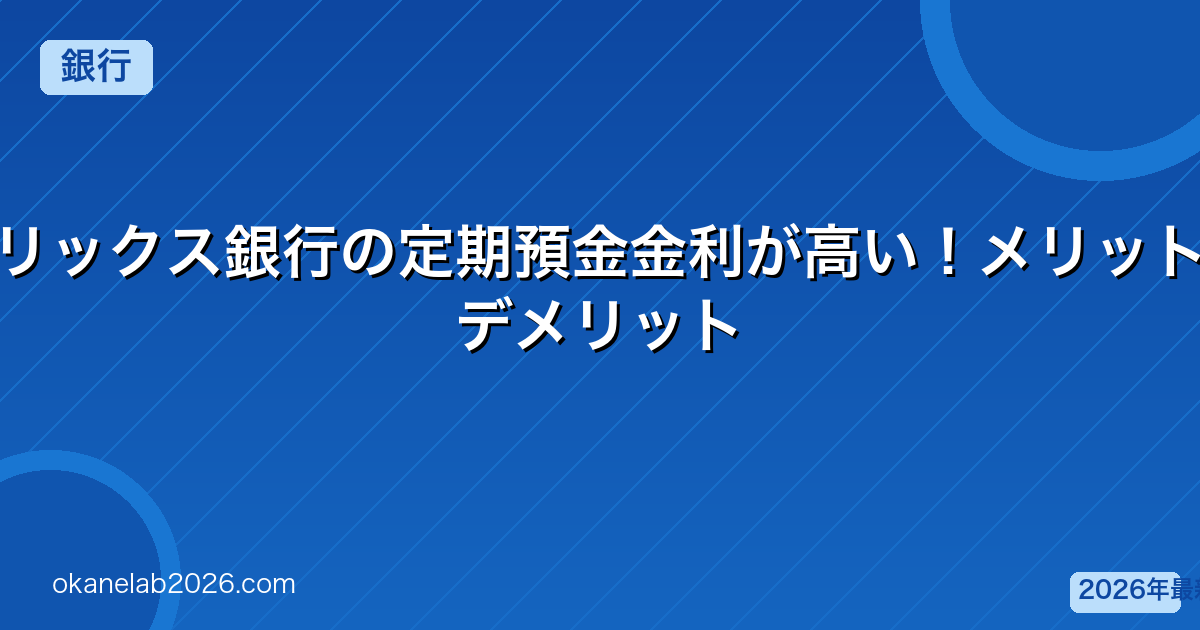 オリックス銀行はネット銀行の中でも定期預金の金利が特に高い銀行です。2026年現在、1年定期で年0.35%前後と大手銀行の数十倍の金利を提供しています。