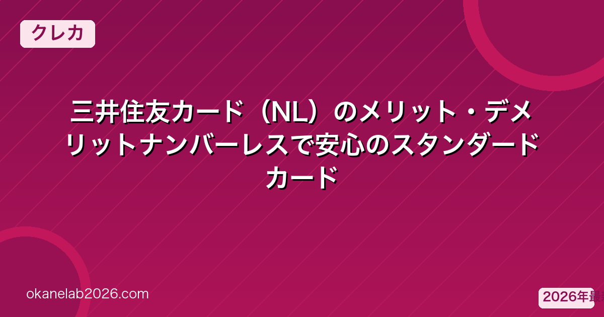 三井住友カード(NL)は三井住友カードが発行する年会費永年無料のクレジットカードです。ナンバーレス設計でセキュリティが高く、コンビニ・マクドナルドでの高還元率が特徴です。2026年も人気No.1クラスの1枚です。